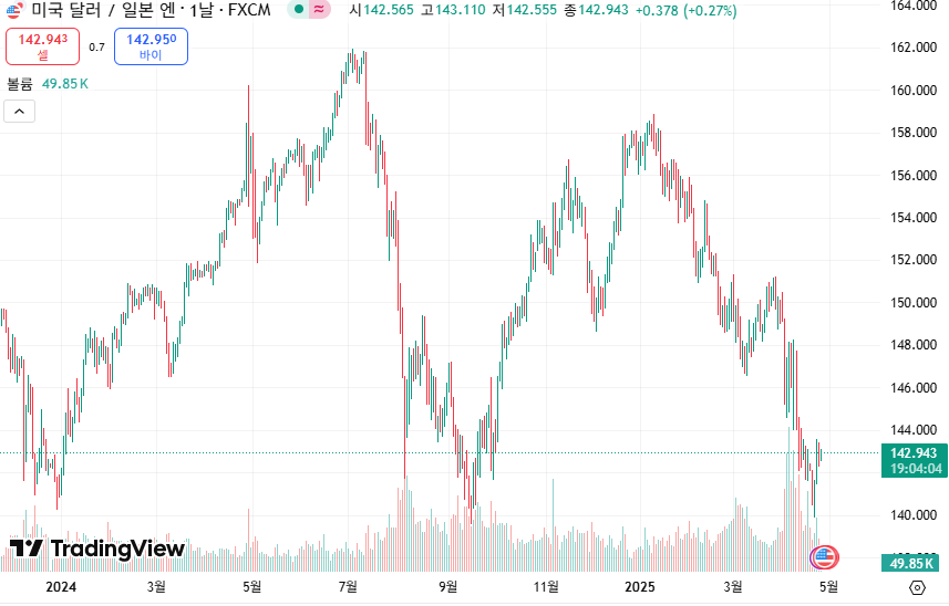 아래의 사진을 살펴보면, 2024년 11월 이후 달러/원 환율은 1,420원에서 1,480원 사이 박스권에서 움직이고 있다.