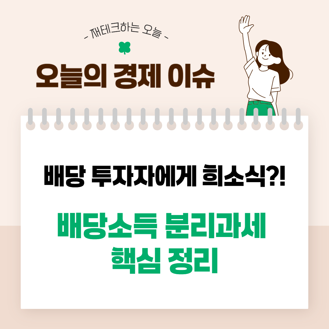 최근 경제 뉴스에서 '배당소득 분리과세'라는 키워드가 심심찮게 등장하고 있다. 배당 투자에 관심 있는 투자자라면 이 제도가 단순한 세법 변경을 넘어 투자 전략 자체를 바꿀 수 있는 중대한 변화라는 점을 눈치챘을 것이다.