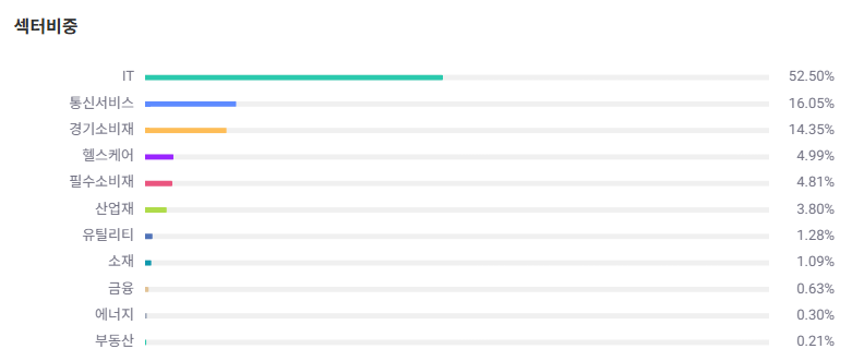 위 사진을 보면, 우리가 흔히 말하는 ‘매그니피센트 7’를 포함한 기술주 중심 구성이다.