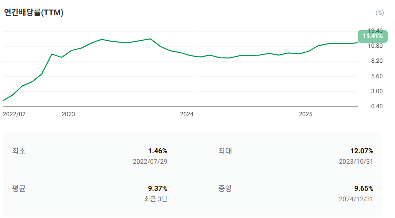 배당성장률도 준수한 편인데, 최근 3년 평균 약 7%의 배당 성장률을 기록했다.