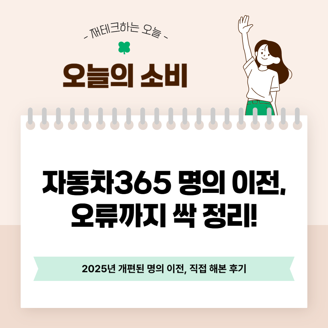 특히 2025년 6월 9일부터 자동차365 사이트의 명의 이전 서비스가 개편되면서, 기존과는 조금 달라진 방식으로 진행된다. 나도 이번에 지인에게 차량을 인수받으면서 처음으로 온라인 명의 이전을 직접 경험해 봤다.