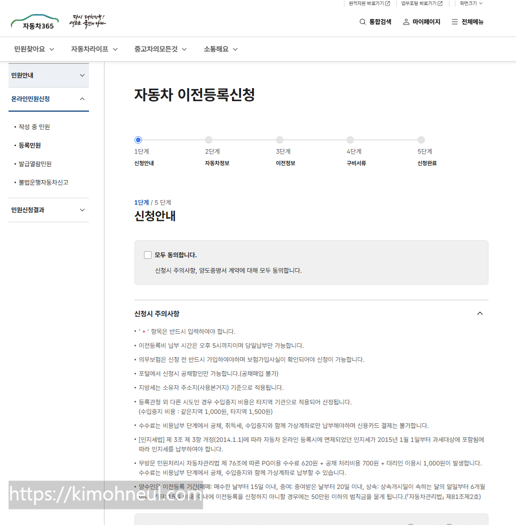 - 보험 가입일로부터 15일 이내에 이전 등록을 완료해야 과태료를 피할 수 있다.