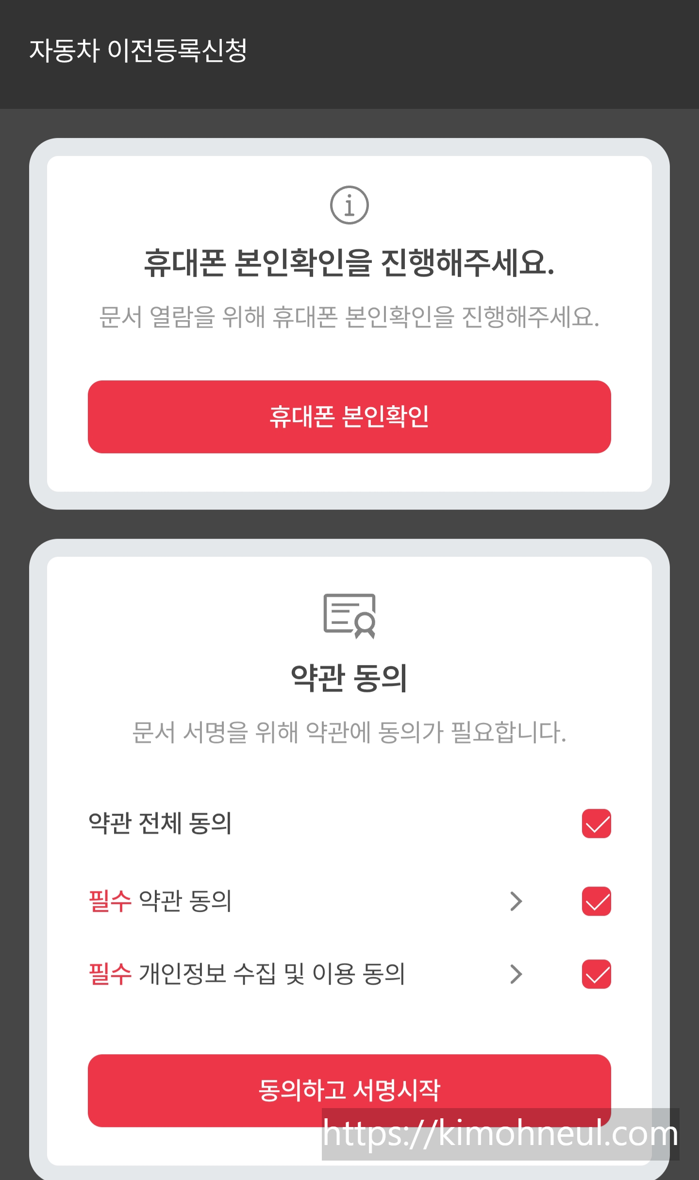 - 핸드폰 본인인증(간편 인증)을 통해 전자서명 가능
