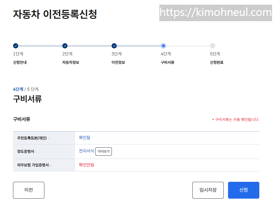 자동차 명의 이전 시 가장 흔한 오류 중 하나가 구비서류 문제다. 이 오류로 신청하는데 애를 먹었고, 원인은 아래와 같았다.