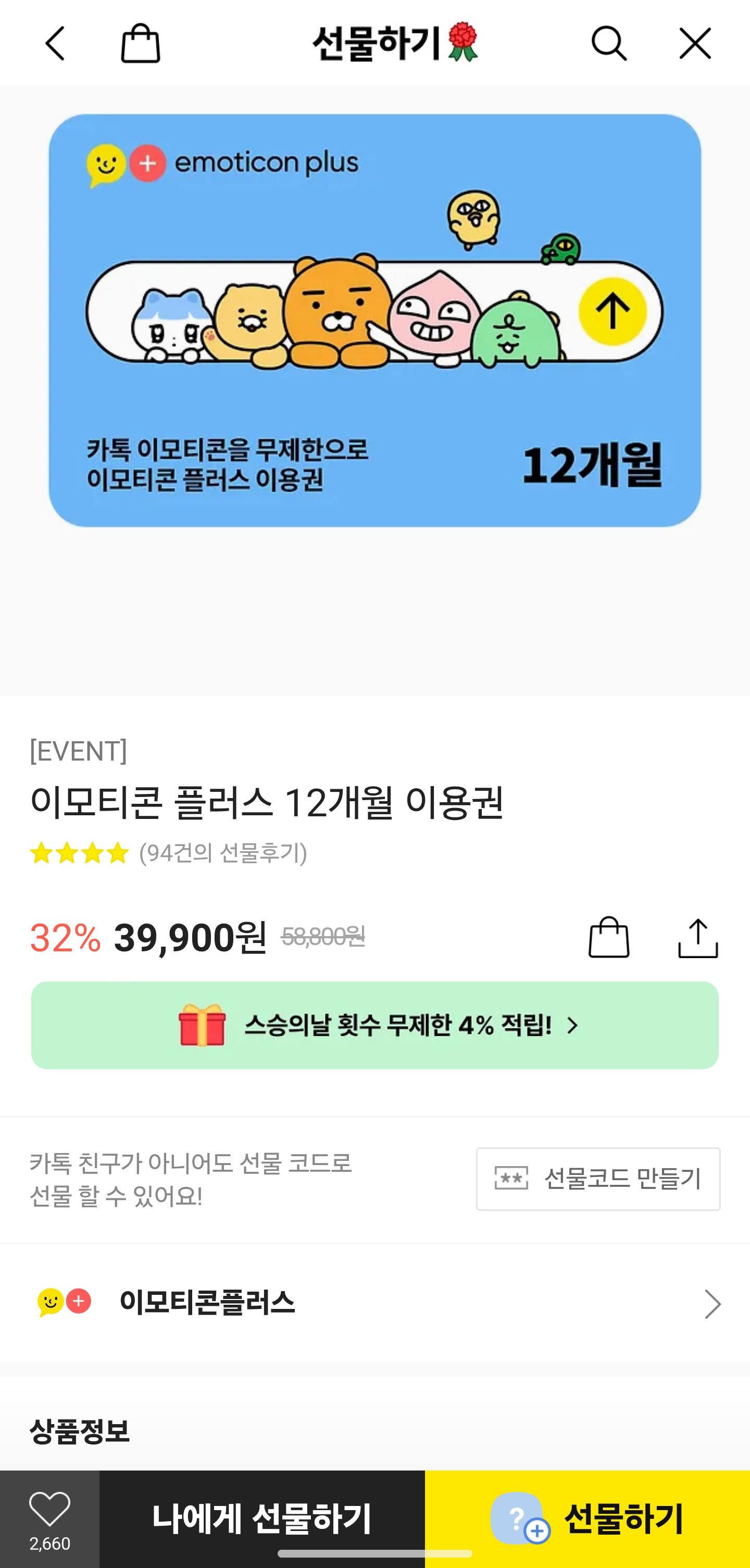 웹 구독도 충분히 저렴하지만, 장기 이용자라면 한 단계 더 나아가보자. 바로 카카오톡 선물하기 기능을 활용하는 것이다.