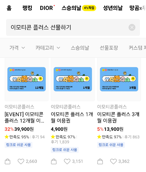 🔎 카카오톡 이모티콘 플러스 가격 비교