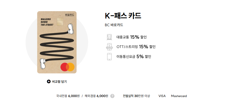 나는 연회비가 가장 저렴한 비씨(BC) K패스 신용카드를 발급받아 사용하고 있었다.