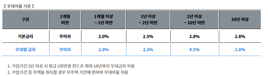 - 일반 청약통장보다 최대 +1.7% p 우대이율 적용